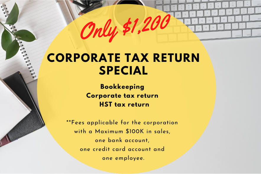 $1,200 Corporate Tax Deal Leave a Comment / Uncategorized / By ProTaxVille Bookkeeping Corporate tax return HST tax return **Fees applicable for the corporation with a Maximum $100K in sales, one bank account, one credit card account and one employee